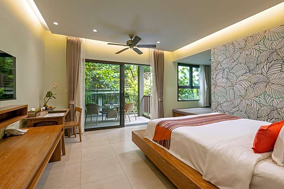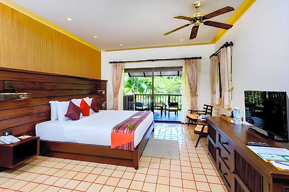 The spacious family room provides air conditioning, a mini-bar, a terrace with garden views as well as a private bathroom featuring a walk-in shower.